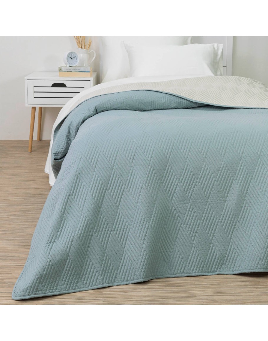 Κουβερλί Υπέρδιπλο, Diamond, Borea, από ύφασμα microfiber, 100% πολυέστερ, δίχρωμο, με γραμμικό γεωμετρικό σχέδιο σε χρώμα μέντα-εκρού. Διαστάσεις 220x240εκ.