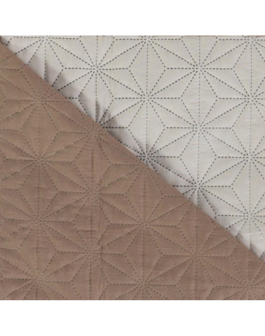 Κουβερλί Υπέρδιπλο, Stellar, Borea, από ύφασμα microfiber, 100% πολυέστερ, δίχρωμο, με γραμμικό γεωμετρικό σχέδιο σε χρώμα εκρού-καφέ. Διαστάσεις 220x240εκ.