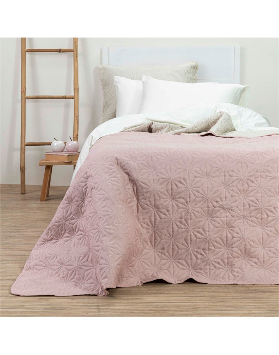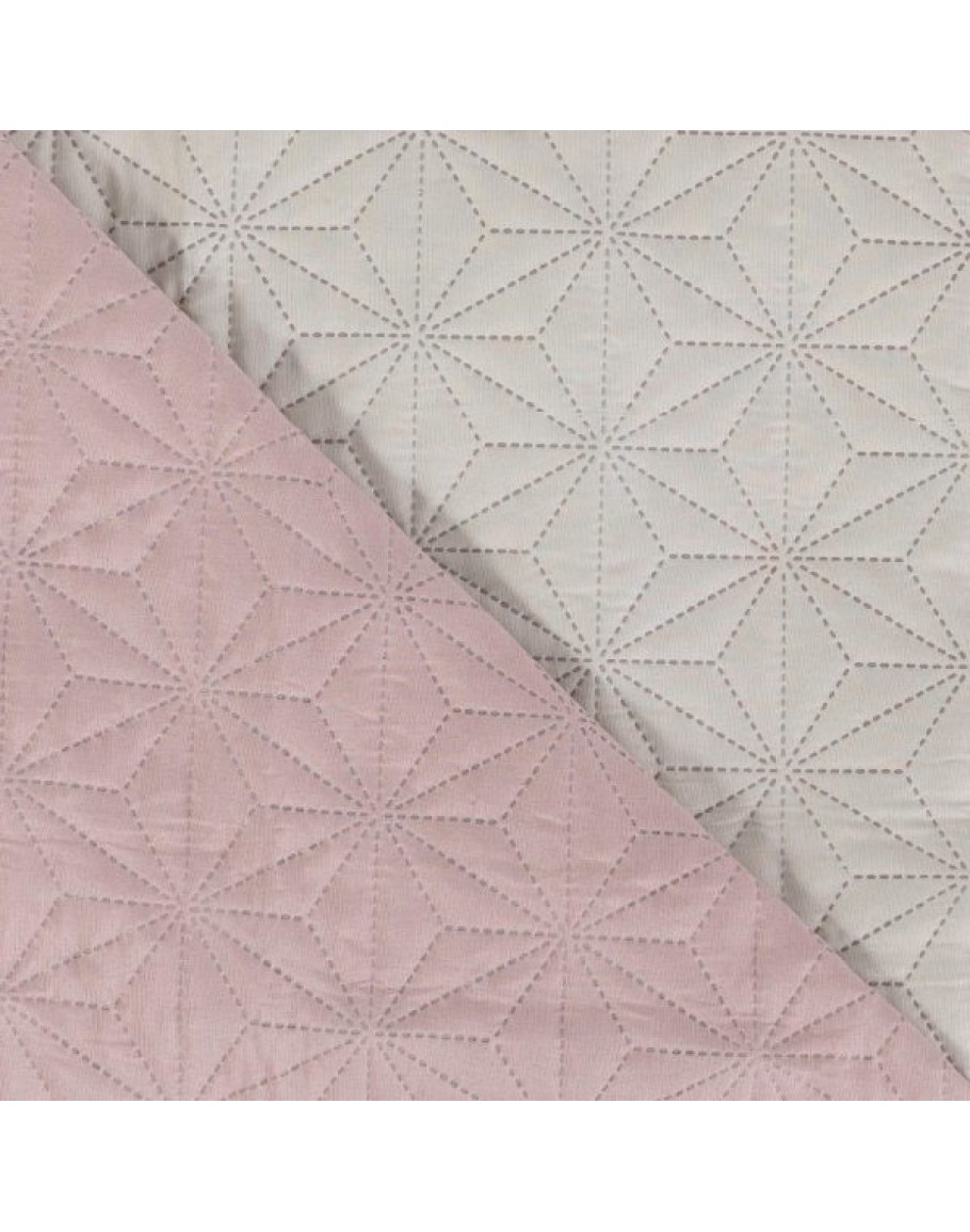 Κουβερλί Υπέρδιπλο, Stellar, Borea, από ύφασμα microfiber, 100% πολυέστερ, δίχρωμο, με γραμμικό γεωμετρικό σχέδιο σε χρώμα ροζέ-εκρού. Διαστάσεις 220x240εκ.