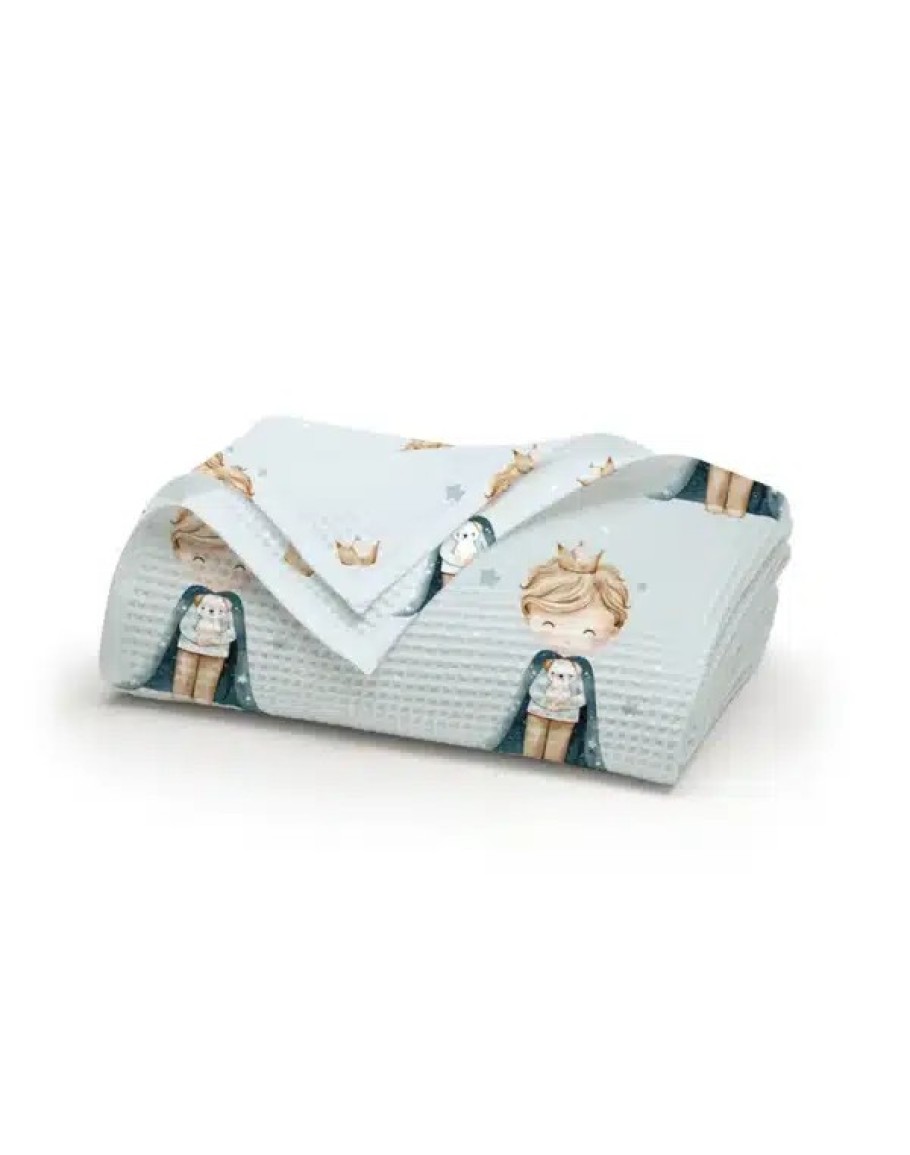 Κουβέρτα Πικέ Moνή, Little King , Borea, από ύφασμα πικέ waffle, 80% βαμβάκι-20% viscose, εμπριμέ, ροζ, σχέδιο πρίγκιπας. Διαστάσεις:160x240εκ.