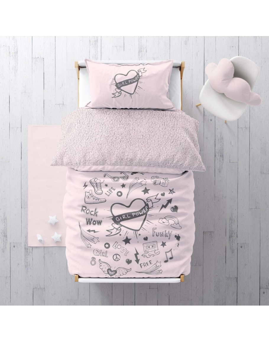 Χουχουλιάρικo και πανέμορφο κουβερτοπάπλωμα, Girl Power, Borea, με πάνω όψη από κουβερτάκι fleece flannel, κάτω όψη από γούνα sherpa (προβατάκι) και παχιά πολυεστερική βάτα εσωτερικά. Σύνθεση: 100% πολυέστερ. Διάσταση: 160Χ220εκ