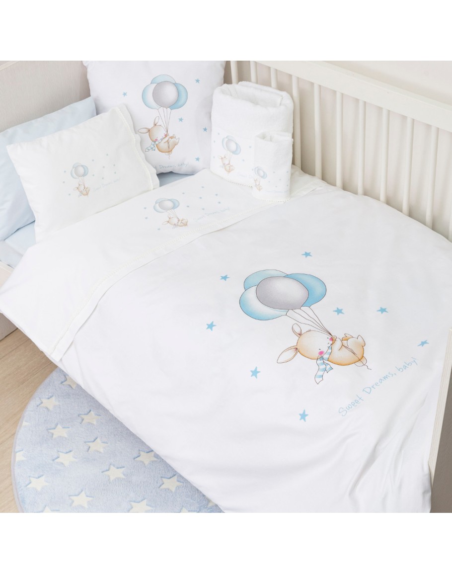 Παπλωματοθήκη κούνιας, Sweet Dreams Baby, σιέλ, Borea, από μερσεριζέ 100% βαμβακερό ύφασμα 160TC και όμορφο σχέδιο με ψηφιακή εκτύπωση. Διάσταση: 110Χ140εκ