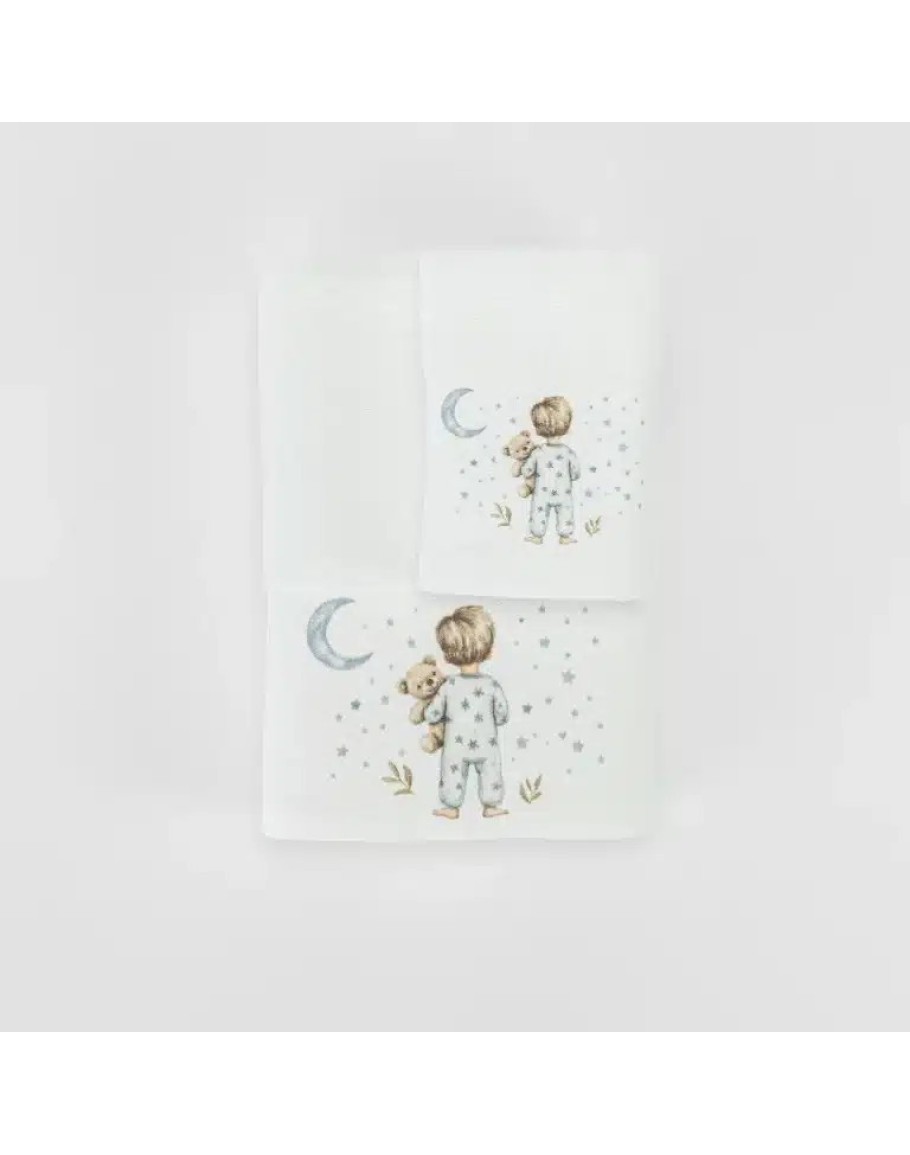Σετ πετσέτες, Goodnight, Πετρόλ, Borea, 2 τεμαχίων, μπάνιου και χειρός, από ύφασμα φροτέ πενιέ, 100% βαμβακερό, μονόχρωμο, με ψηφιακή εκτύπωση, σχέδιο με παιδάκια με βρεφικές πιτζάμες. Διατίθεται σε 2 χρώματα.