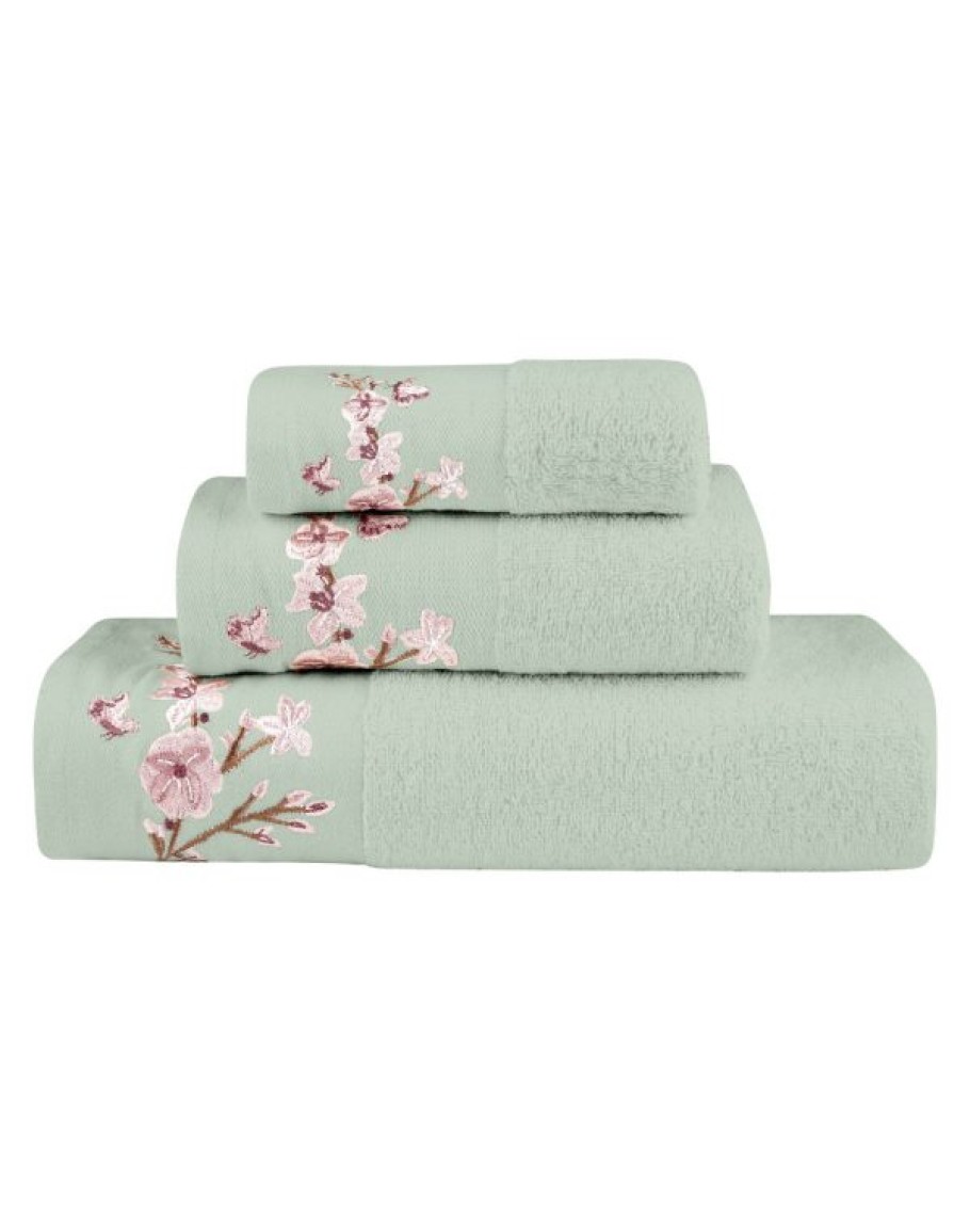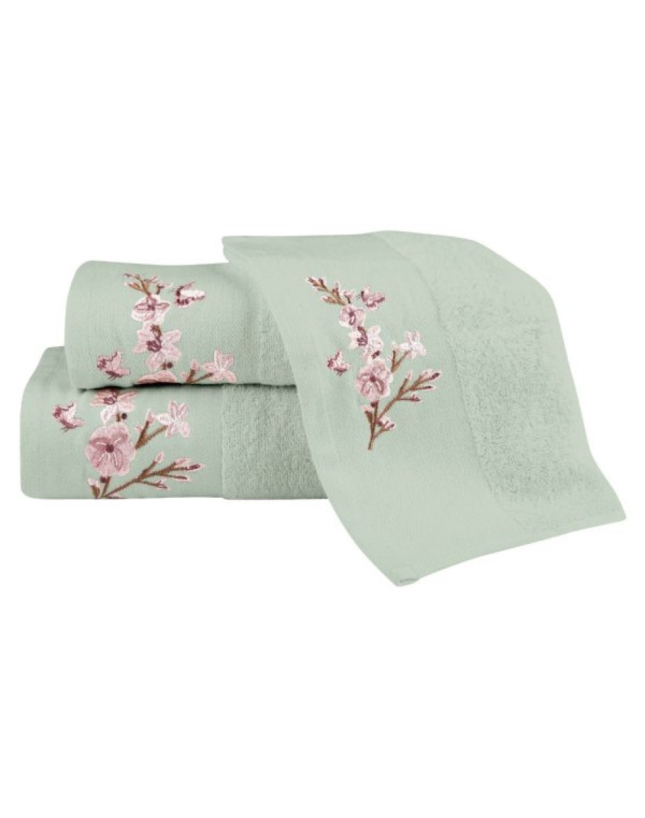 Σετ Πετσέτες 3 τεμαχίων, Cherry Blossom, Borea, μπάνιου, προσώπου και χειρός, από ύφασμα φροτέ, πενιέ, 100% βαμβακερό, με κέντημα, χρώμα φυστικί. Διαστάσεις: 70x140 / 50x90 / 30x50εκ.