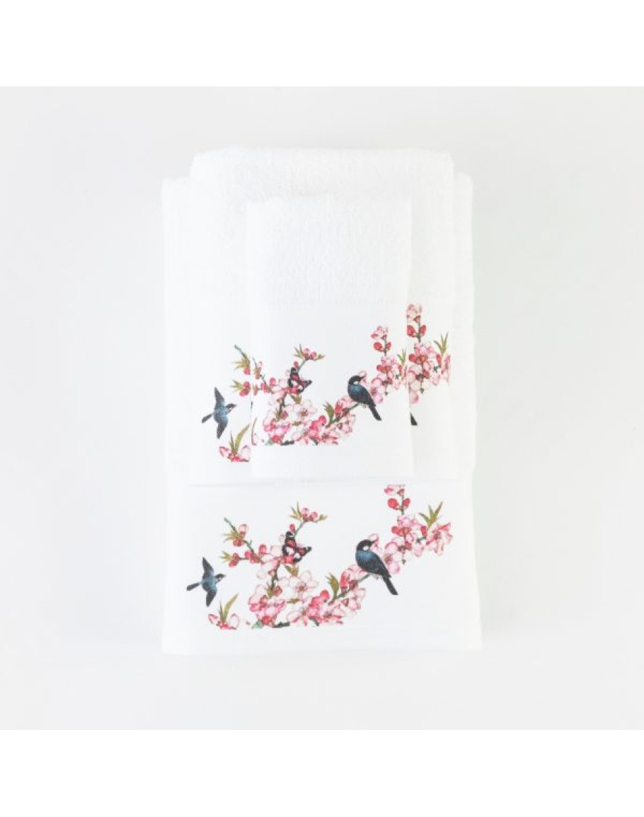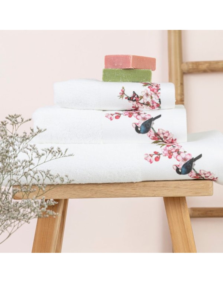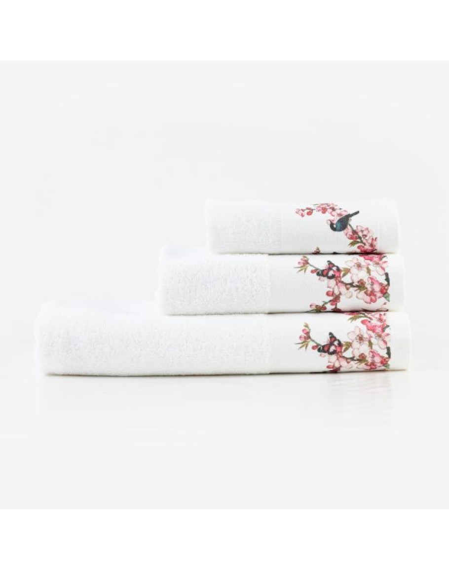 Σετ Πετσέτες 3 τεμαχίων, Fuji, Borea, μπάνιου, προσώπου και χειρός, από ύφασμα φροτέ, πενιέ, 100% βαμβακερό, με διακοσμητική φάσα ύφασμα, χρώμα λευκό. Διαστάσεις: 70x140 / 50x90 / 30x50εκ.