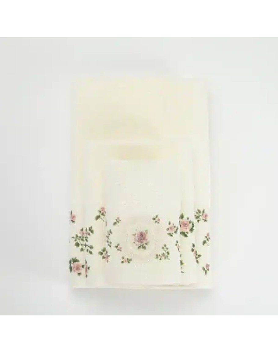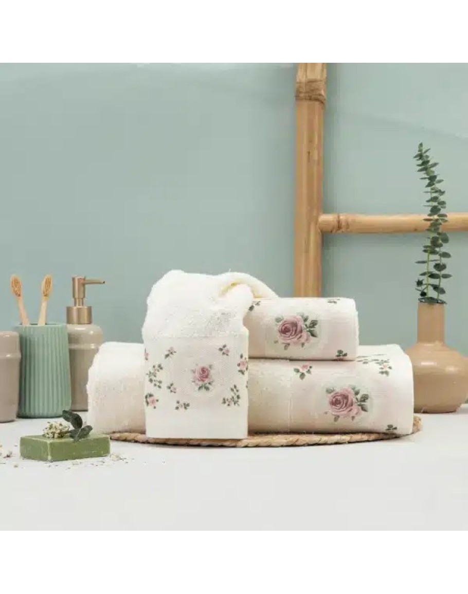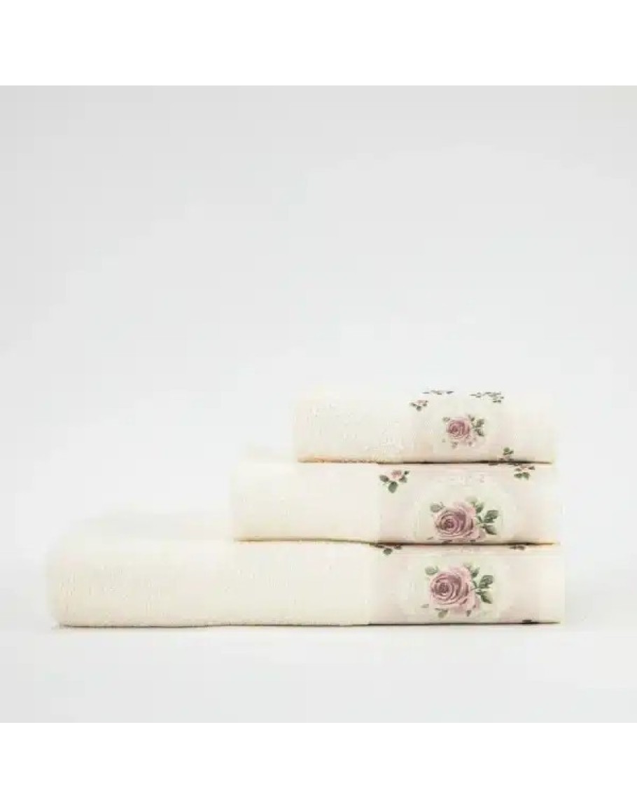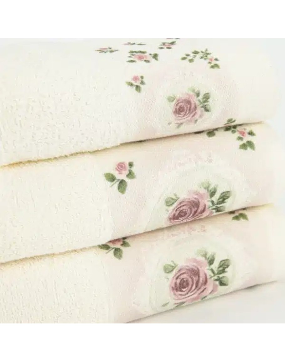 Σετ Πετσέτες 3 τεμαχίων, Wildrose, Borea, μπάνιου, προσώπου και χειρός, από ύφασμα φροτέ, πενιέ, 100% βαμβακερό, με ψηφιακή εκτύπωση, χρώμα εκρού. Διαστάσεις: 70x140εκ. / 50x90εκ. / 30x50εκ.