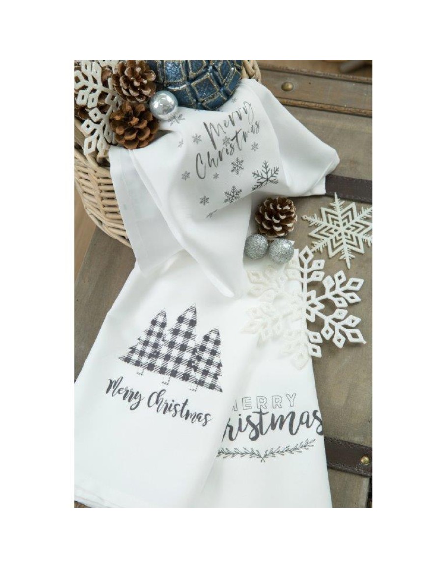 Σετ ποτηρόπανα 3 τεμ., σχ. Έλατο, Borea, με ύφασμα από 50% βαμβάκι και 50% πολυέστερ, με ψηφιακή εκτύπωση και μοντέρνο χριστουγεννιάτικο σχέδιο. Για σκούπισμα των πιάτων χωρίς χνούδι. Σε κουτάκι δώρου