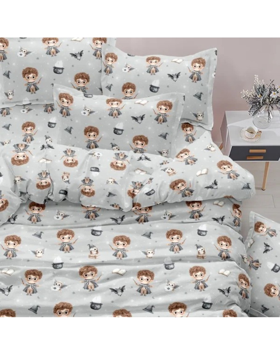 Σετ Σεντόνια Moνά, Wizard, Borea, από ύφασμα μερσεριζέ, 144 κλωστών, 100% βαμβακερό, εμπριμέ, με παιδικό σχέδιο μάγος. Διαστάσεις: (2) 160x250εκ. + μαξιλαροθήκη 50x70εκ.