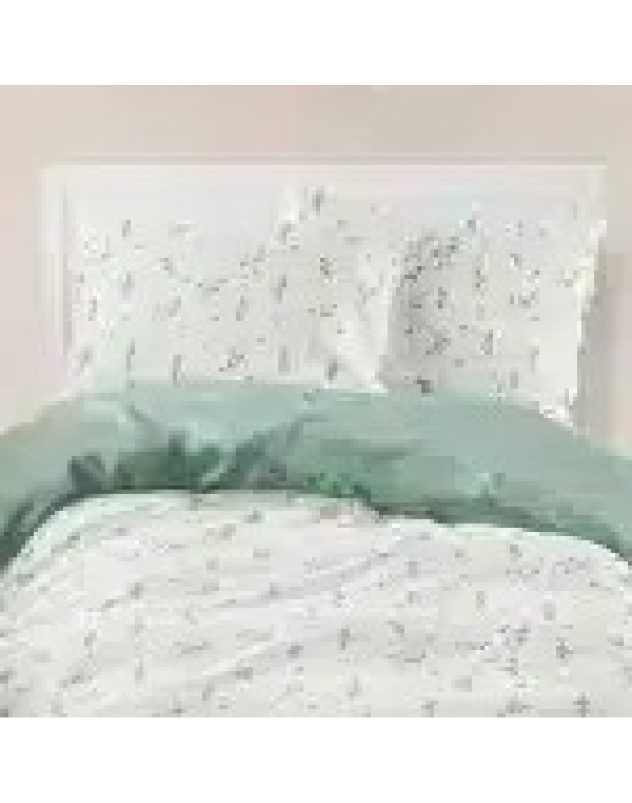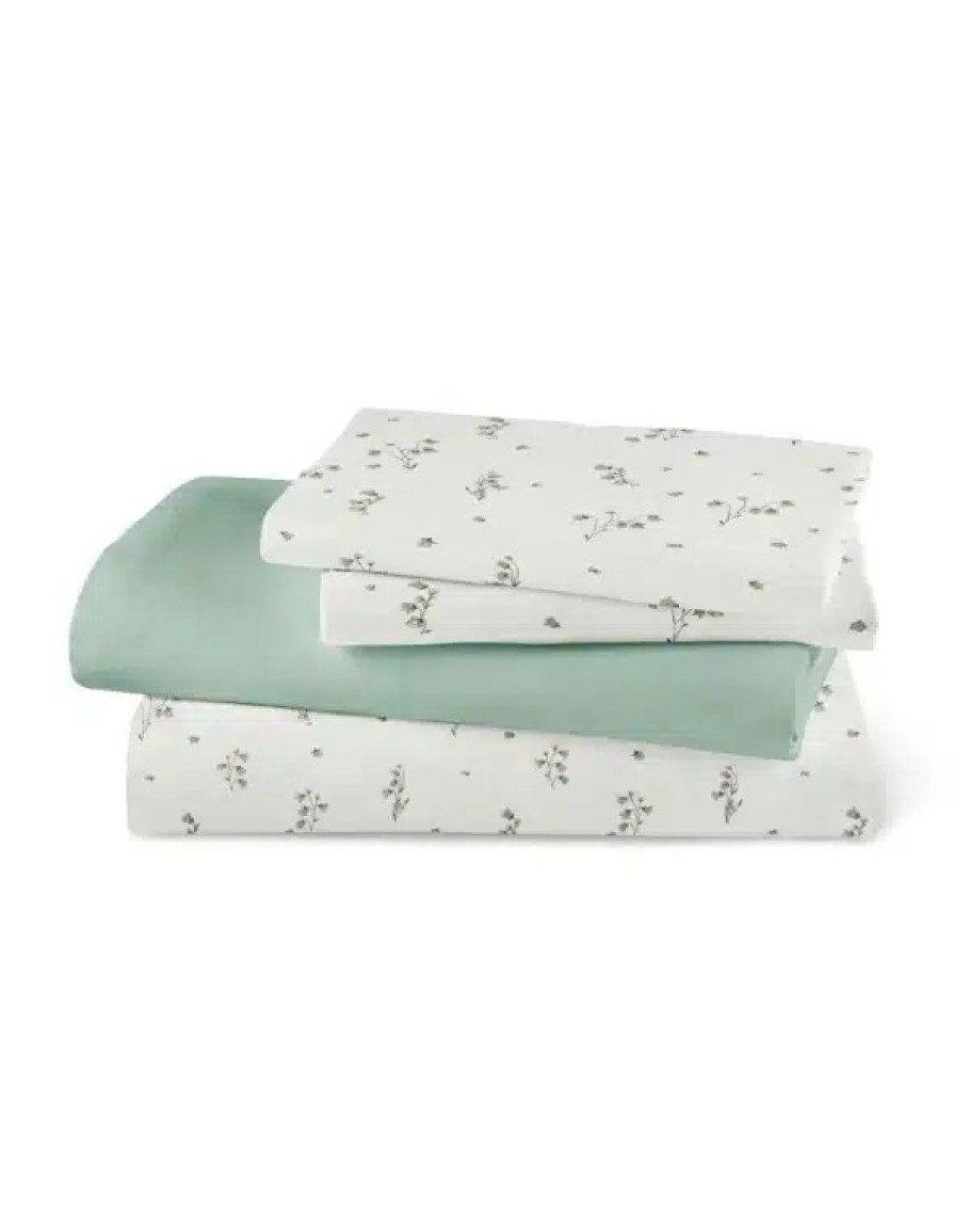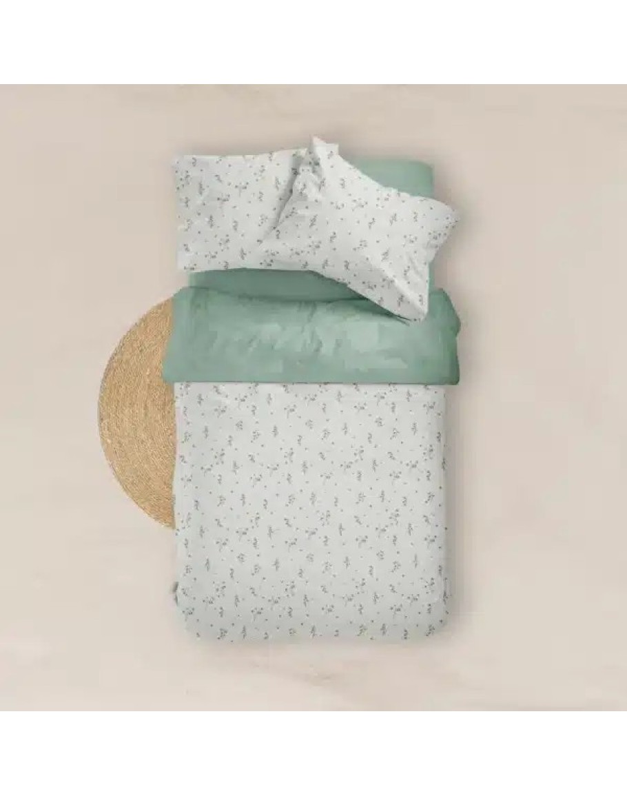 Σετ Σεντόνια Μονά, Campana, Borea, από ύφασμα μερσεριζέ, 160 κλωστών, 100% βαμβακερό, συνδυασμός εμπριμέ φλοράλ μοτίβου και μονοχρωμίας, σε χρώμα λευκό με λαδί λεπτομέρειες. Διαστάσεις: (2) 160x240εκ. +  μαξιλαροθήκη 50x70εκ.