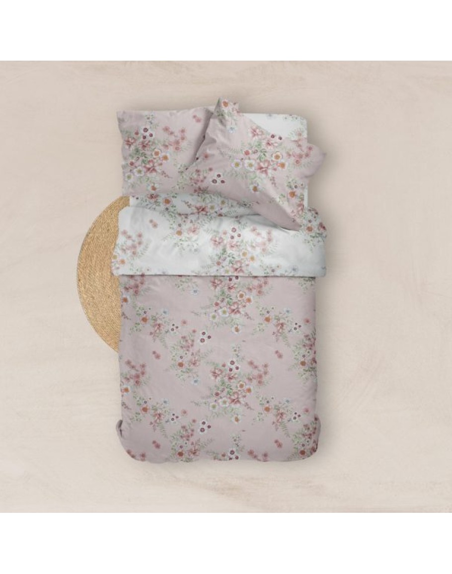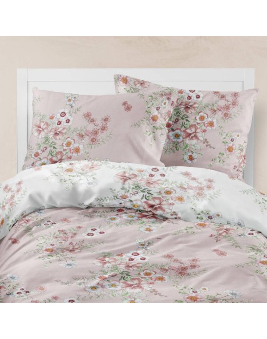 Σετ Σεντόνια υπέρδιπλα, Jardin, Borea, από ύφασμα μερσεριζέ, 160 κλωστών, 100% βαμβακερό, συνδυασμός εμπριμέ φλοράλ μοτίβου, σε χρώμα ροζέ. Διαστάσεις: (2) 240x260εκ. + 2 μαξιλαροθήκες 50x70εκ.