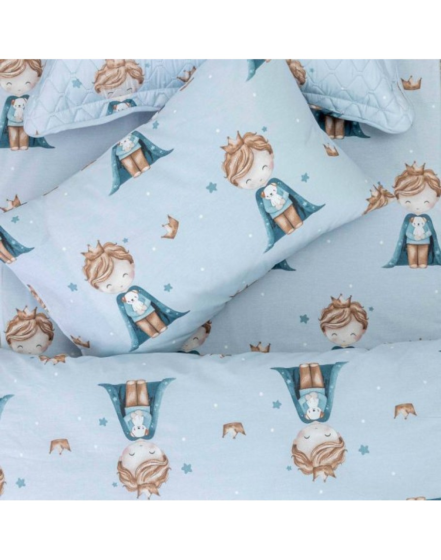 Σετ Σεντόνια Moνά, Little King, Borea, από ύφασμα μερσεριζέ, 160 κλωστών, 100% βαμβακερό, εμπριμέ, με παιδικό σχέδιο πρίγκιπας. Διαστάσεις: (2) 160x240εκ. + μαξιλαροθήκη 50x70εκ.