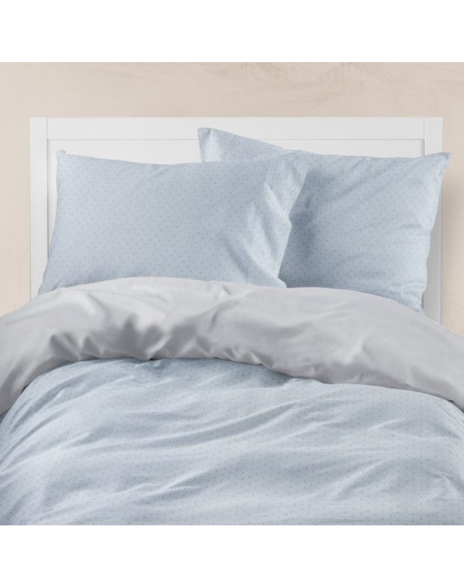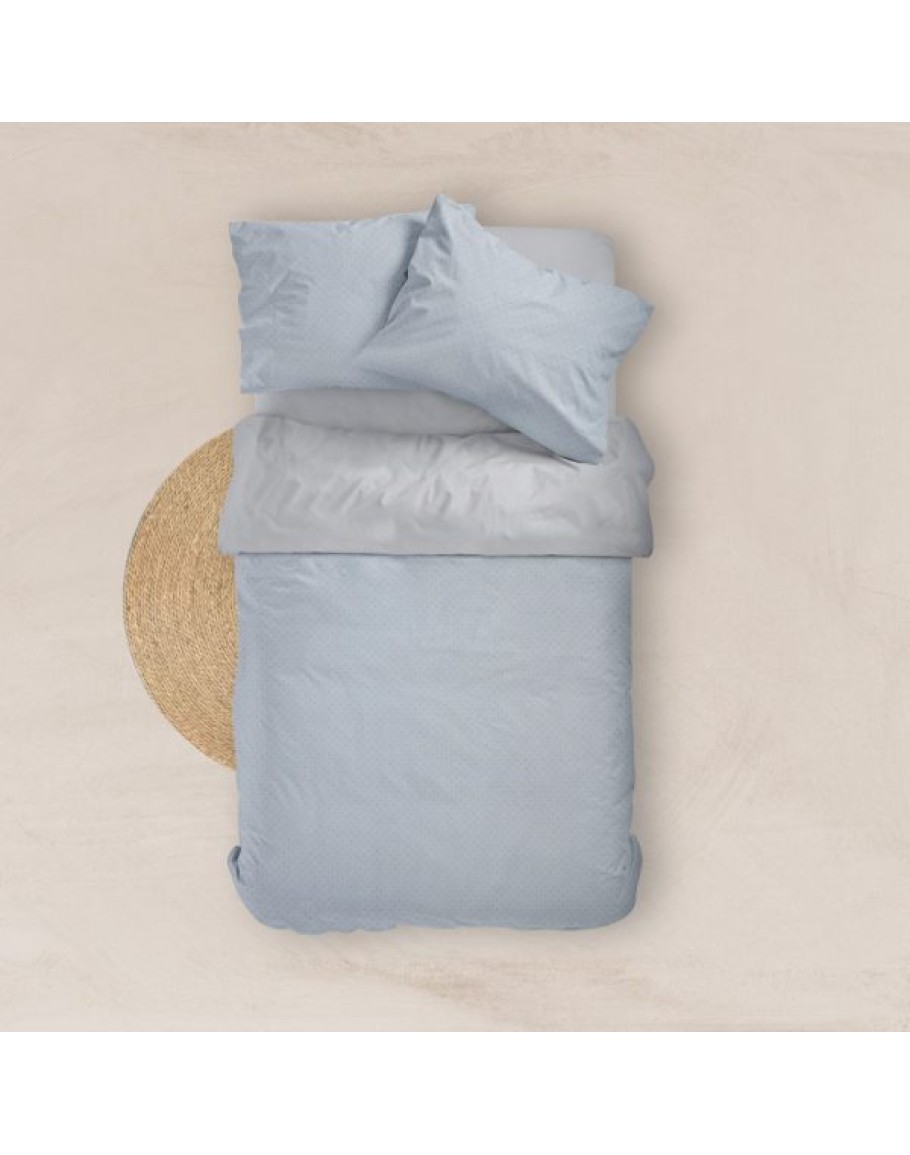Σετ Σεντόνια Μονά, Pois, Borea, από ύφασμα μερσεριζέ, 160 κλωστών, 100% βαμβακερό, συνδυασμός εμπριμέ γεωμετρικού μοτίβου και μονοχρωμίας, σε χρώμα σιέλ. Διαστάσεις: (2) 160x240εκ. + μαξιλαροθήκη 50x70εκ.