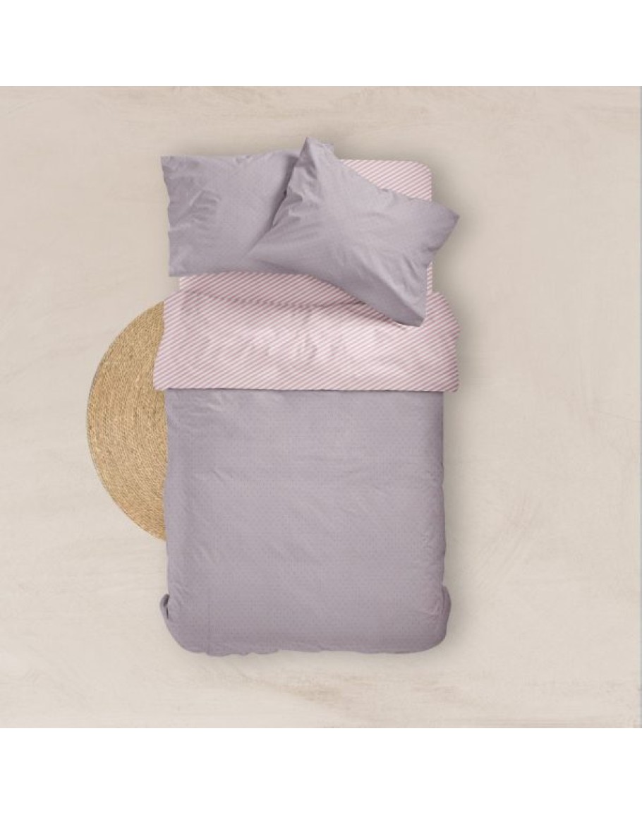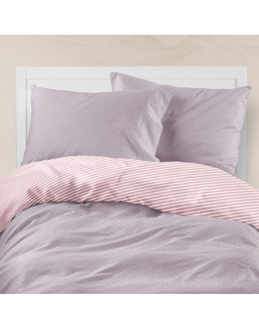 Σετ Σεντόνια Μονά, Pois, Borea, από ύφασμα μερσεριζέ, 160 κλωστών, 100% βαμβακερό, συνδυασμός εμπριμέ γεωμετρικού μοτίβου και μονοχρωμίας, σε χρώμα σάπιο μήλο. Διαστάσεις: (2) 160x240εκ. + μαξιλαροθήκη 50x70εκ.