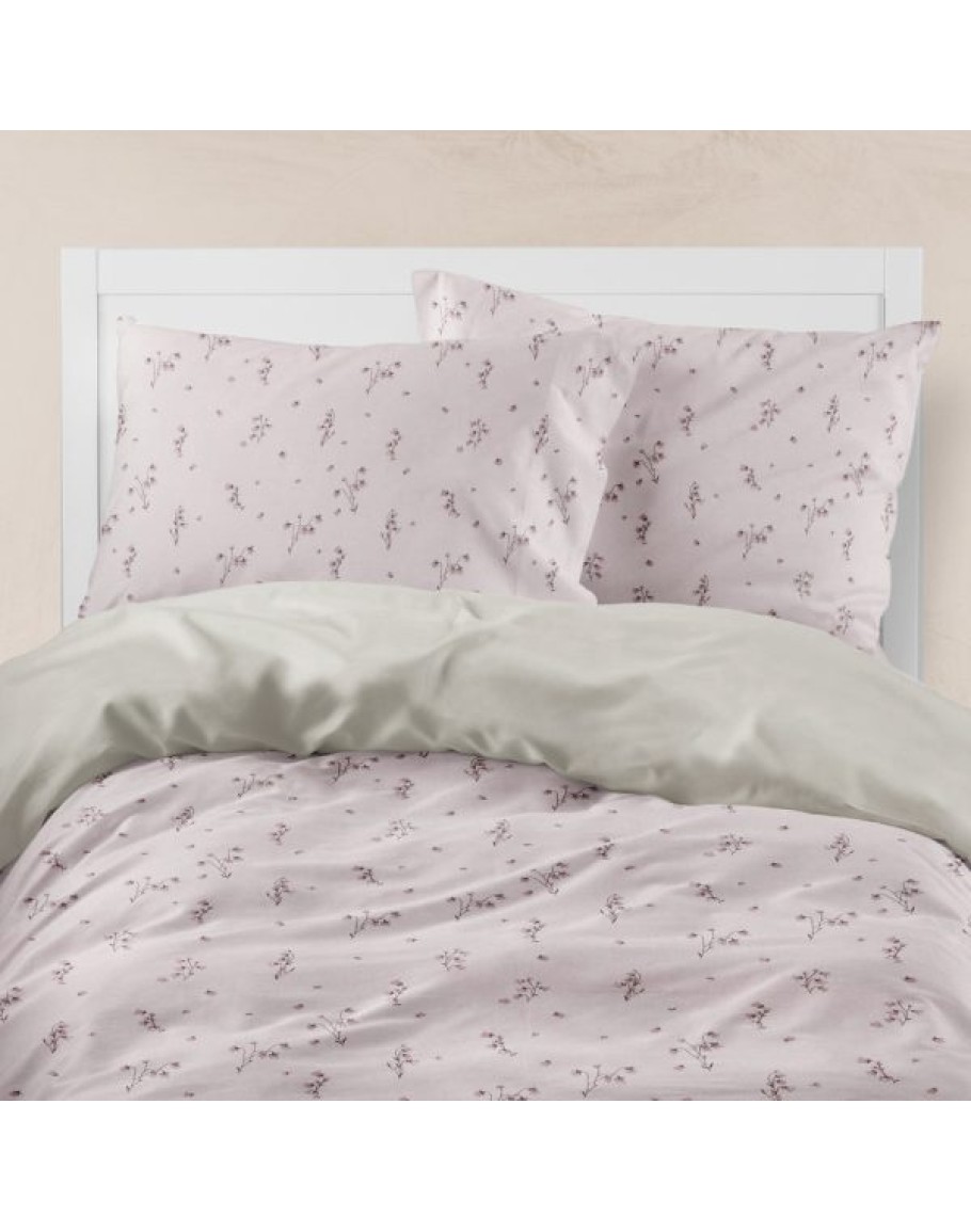Σετ Σεντόνια υπέρδιπλα, Campanula, Borea, από ύφασμα μερσεριζέ, 160 κλωστών, 100% βαμβακερό, συνδυασμός εμπριμέ φλοράλ μοτίβου και μονοχρωμίας, σε χρώμα σάπιο μήλο. Διαστάσεις: (2) 240x260εκ. + 2 μαξιλαροθήκες 50x70εκ.