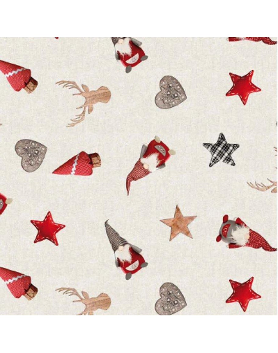 Borea: Τραπεζομάντηλο από ύφασμα λονέτα 50% βαμβακερό-50% πολυέστερ, εμπριμέ με χριστουγεννιάτικο σχέδιο Νάνοι. Η συσκευασία περιλαμβάνει 1 τραπεζομάντηλο 140 Χ 180 εκ.