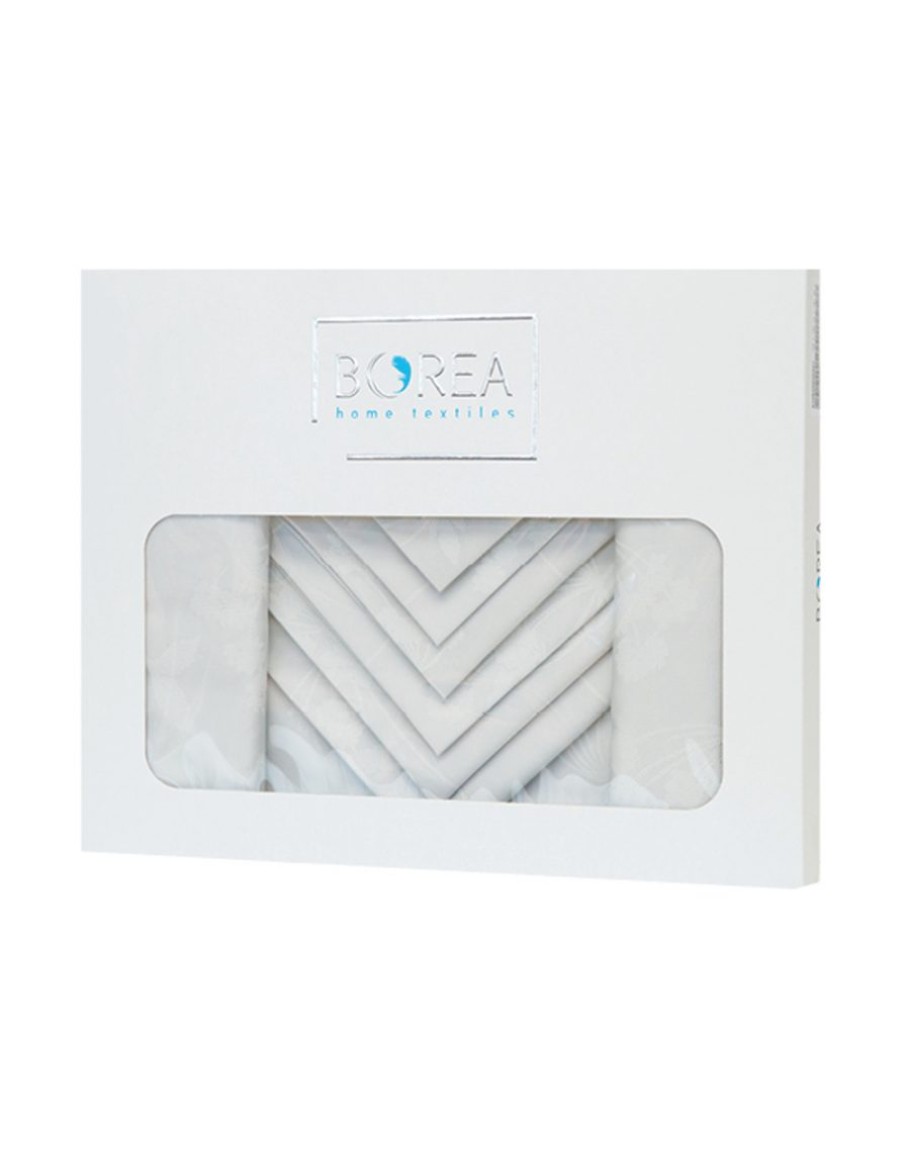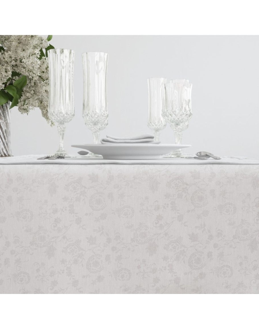 Τραπεζομάντηλο, σετ 9 τεμ. Τριαντάφυλλο, Borea, με ζακάρ ύφασμα από 100% βαμβάκι και ανάγλυφα σχέδια, σε λευκό χρώμα. Η συσκευασία περιλαμβάνει 1 τραπεζομάντηλο 140Χ220εκ και 8 πετσέτες φαγητού 45Χ45εκ.