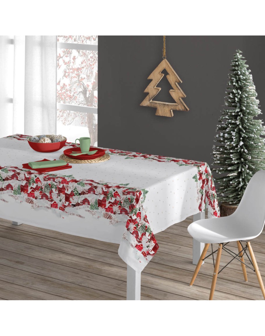 Χριστουγεννιάτικο τραπεζομάντηλο, Christmas House, Borea, με ύφασμα λονέτα, από 50% βαμβάκι-50% πολυέστερ. Διάσταση: 140Χ180εκ