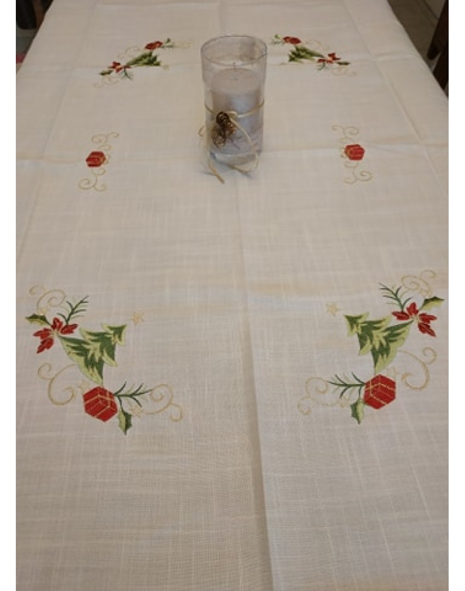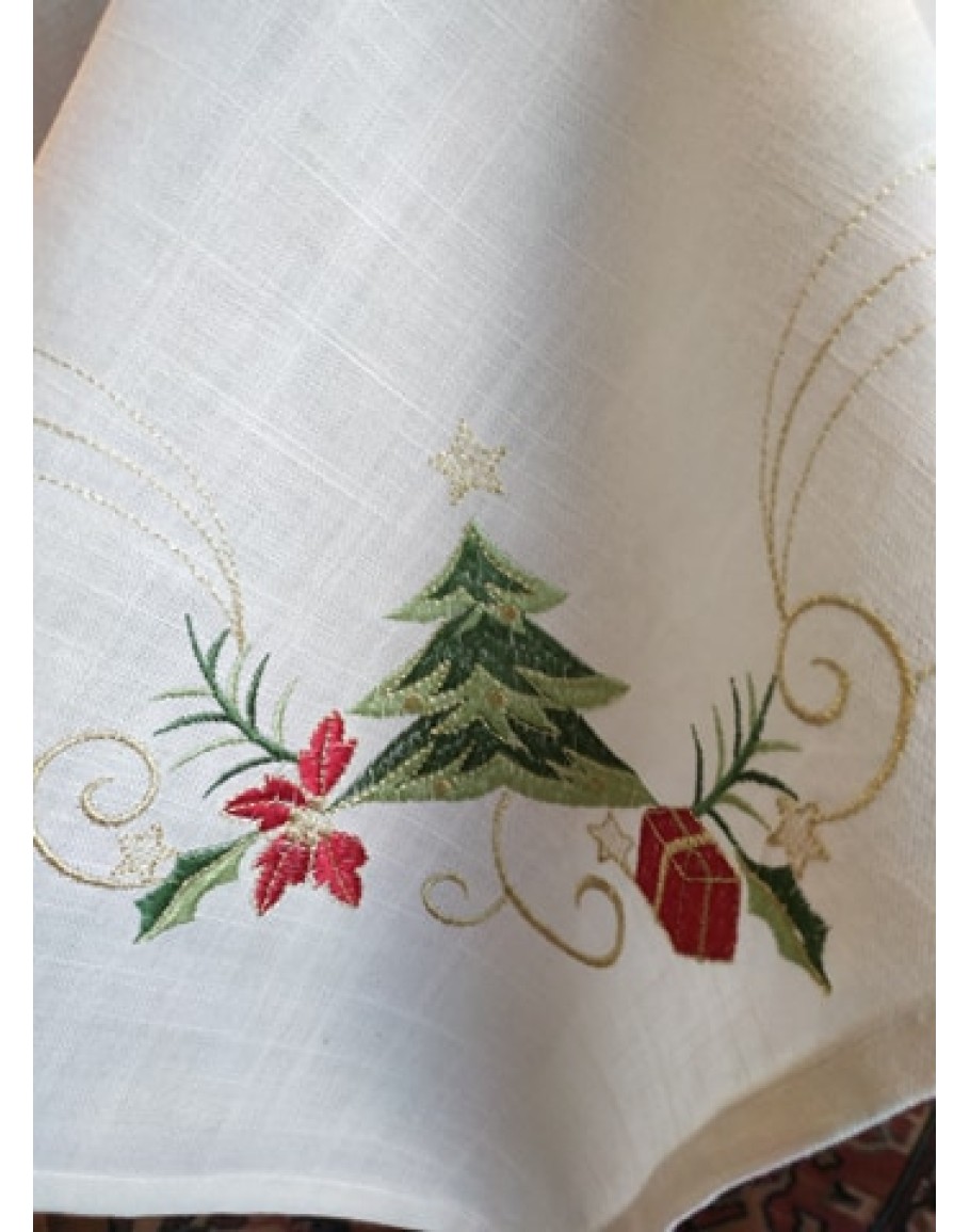 Χριστουγεννιάτικο τραπεζομάντιλο με κέντημα, Έλατο, από 100% πολυεστερικό ύφασμα, με όμορφο κέντημα στο κέντρο και στις γωνίες. Διάσταση: 140Χ180εκ.