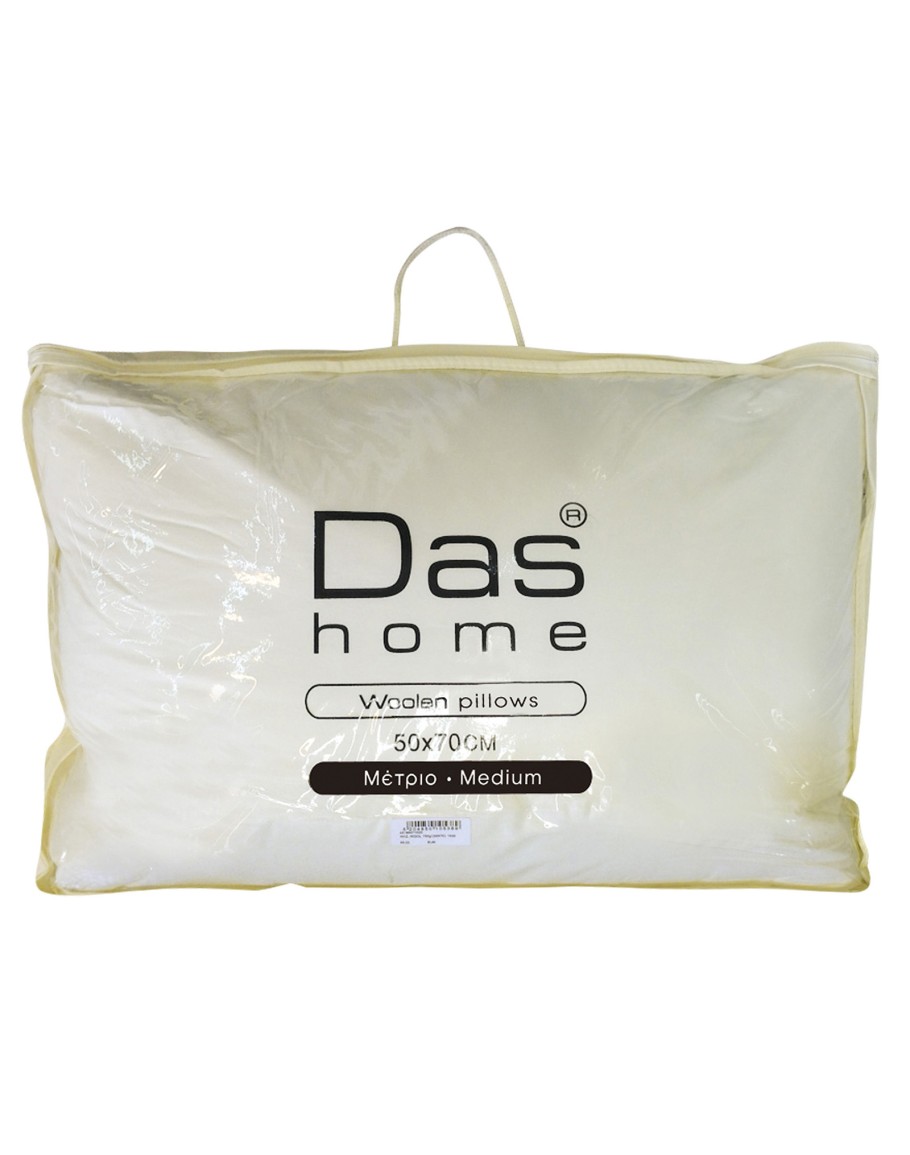 Μαξιλάρι από μαλλί merinos, σχ. 1020, DasHome. Το ύφασμά του είναι από 100% βαμβακερό υποαλλεργικό ύφασμα και η γέμισή του από 100% αγνό παρθένο μαλλί Merinos, με ειδική αντισκωριακή προστασία. Μέτρια σκληρότητα. Διάσταση: 50Χ70εκ