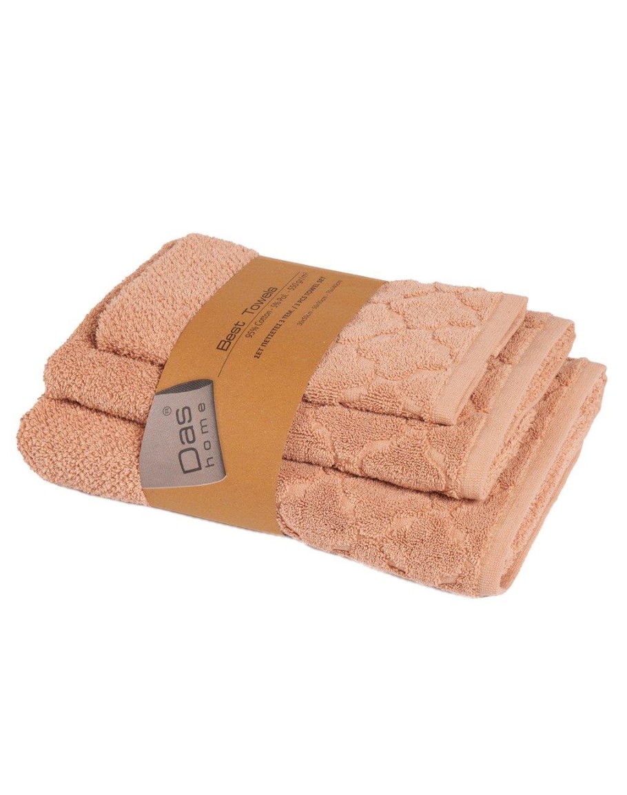 Σετ πετσέτες 3 τεμαχίων της σειράς Best. Είναι από 95% βαμβάκι υψηλής ποιότητας και 5% pol, ιδιαίτερα απαλές, απορροφητικές και ανθεκτικές στη χρήση με βάρος 550gr/m². Το σετ αποτελείται από μία πετσέτα μπάνιου 70Χ140εκ., μία πετσέτα προσώπου 50Χ90εκ. και μία πετσέτα χεριών 30Χ50εκ.