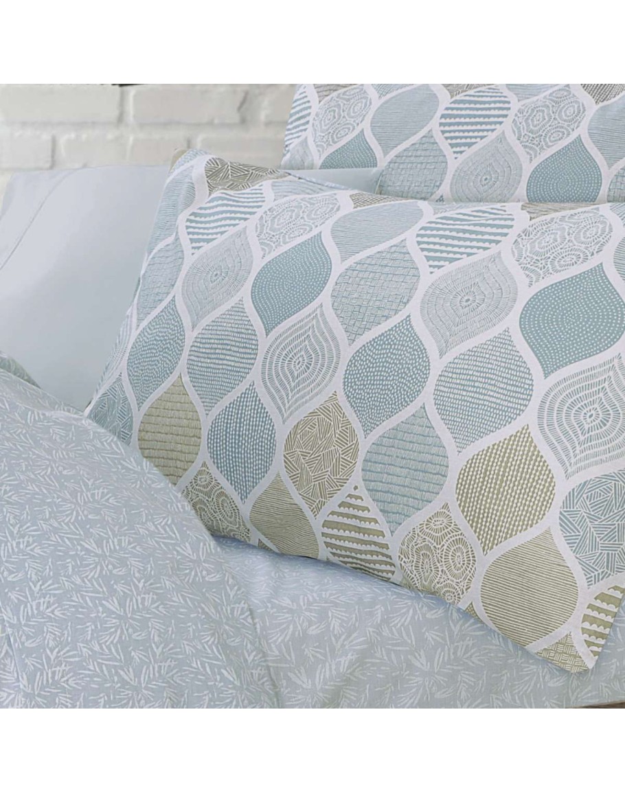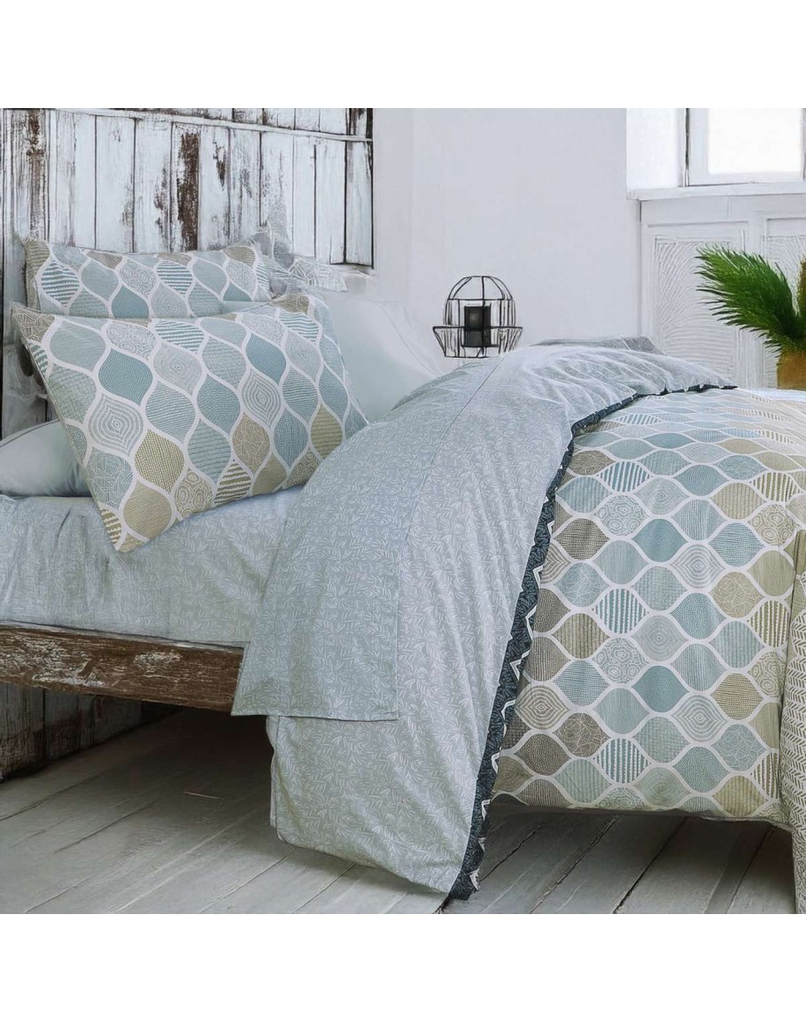 Σετ μονά σεντόνια σε αποχρώσεις του μπλε, του γκρι και του μπεζ, διακοσμημένο με υπέροχο γεωμετρικό σχέδιο από την εταιρεία ESPREE. Η σύνθεσή του είναι από 100% βαμβάκι με πυκνότητα ύφανσης 144 κλωστών. Διαθέτει ειδική επεξεργασία που το καθιστά εύκολο στο σιδέρωμα, εξασφαλίζοντας απόλυτη απαλότητα στην υφή και ανθεκτικότητα στο πέρασμα του χρόνου. Το σετ περιλαμβάνει ένα κατωσέντονο με λάστιχο σε διάσταση 100x200+35εκ, ένα πανωσέντονο σε διάσταση 170x270εκ και μία μαξιλαροθήκη 52x72εκ, δημιουργώντας ένα ολοκληρωμένο και κομψό σύνολο που θα αναβαθμίσει την αισθητική του υπνοδωματίου σας. Πλένεται στους 40°C.