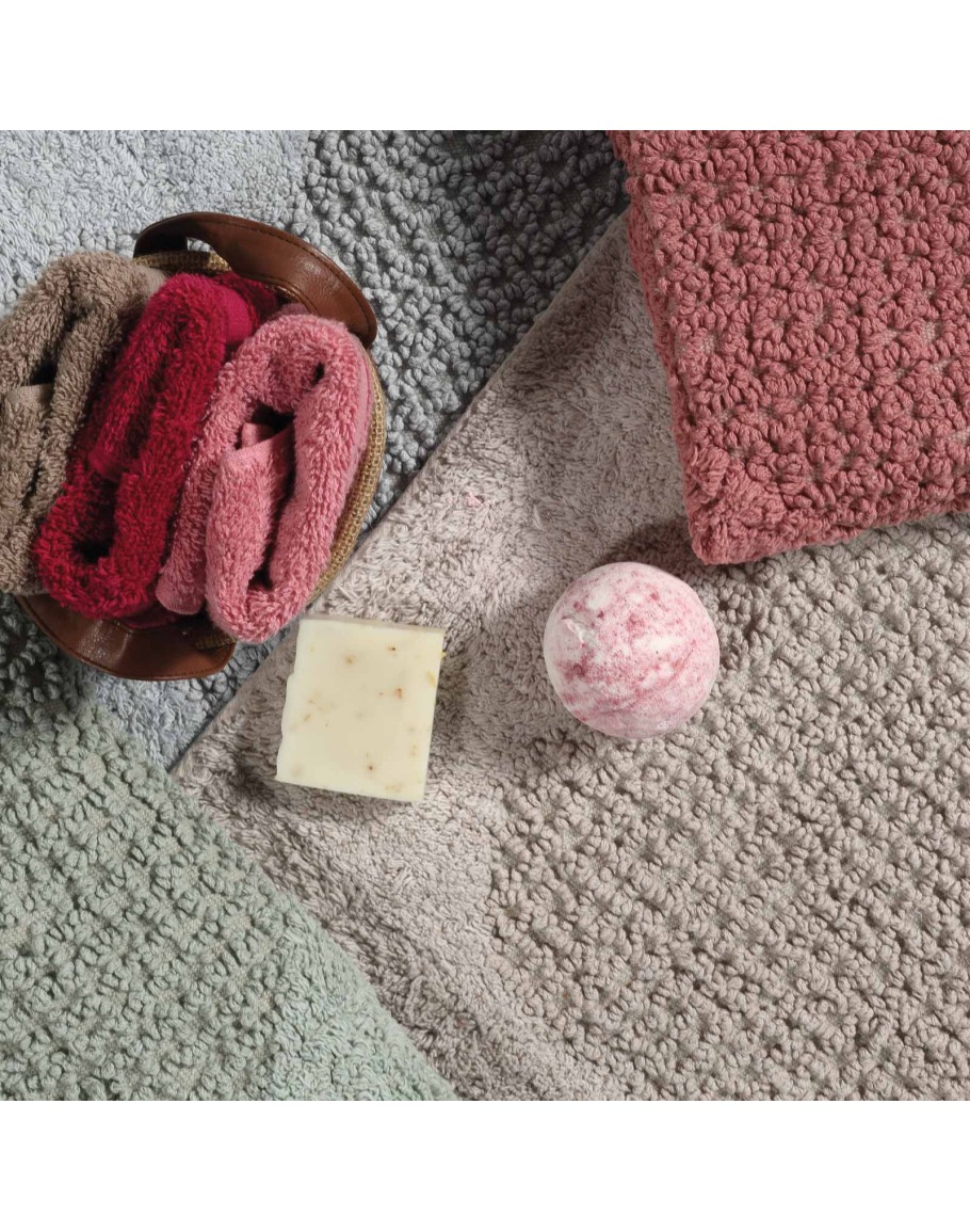 Ταπέτο μπάνιου με ανάγλυφο σχέδιο σε υπέροχες παστέλ αποχρώσεις που ταιριάζουν σε κάθε μπάνιο και καλύπτουν κάθε γούστο. Είναι από 100% βαμβάκι, ιδιαίτερα απαλό, απορροφητικό και ανθεκτικό στη χρήση. Διατίθεται σε διάσταση 60x90cm. Das home...makes your house a home!