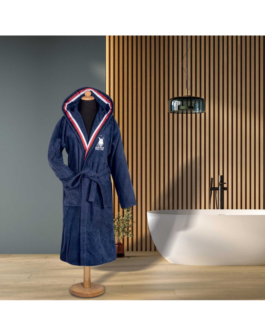 Ζακάρ μπουρνούζι της σειράς Essential, με διακοσμητική τρέσσα. Είναι από 100% βαμβάκι υψηλής ποιότητας, ιδιαίτερα απορροφητικό και ανθεκτικό στη χρήση, με βάρος 420gr/m2. Τα χρώματα που χρησιμοποιούνται είναι ανεξίτηλα και υποαλλεργικά. Διαθέσιμο σε μέγεθος Small. Επιλέξτε Greenwich Polo Club και απολαύστε ποιότητα, στυλ και πολυτέλεια.
