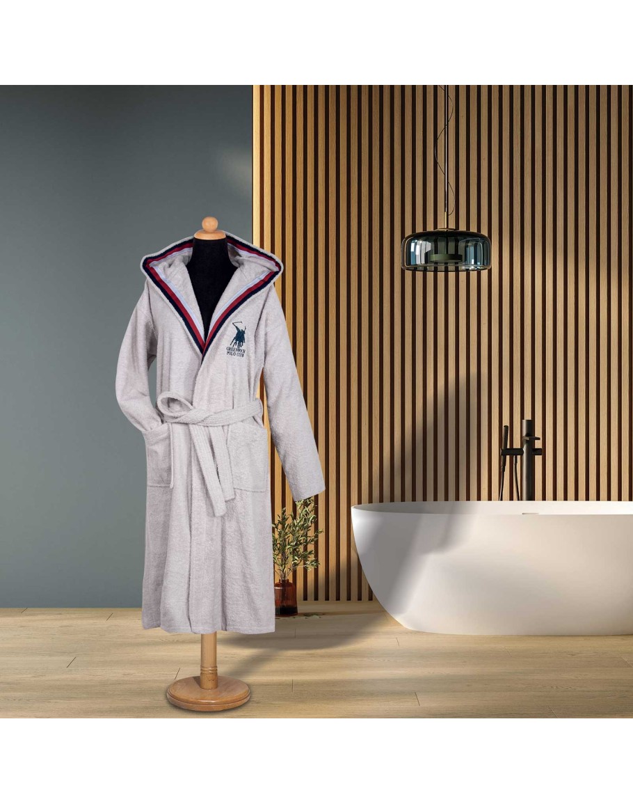 Ζακάρ μπουρνούζι της σειράς Essential, με διακοσμητική τρέσσα. Είναι από 100% βαμβάκι υψηλής ποιότητας, ιδιαίτερα απορροφητικό και ανθεκτικό στη χρήση, με βάρος 420gr/m2. Τα χρώματα που χρησιμοποιούνται είναι ανεξίτηλα και υποαλλεργικά. Διαθέσιμο σε μέγεθος Large. Επιλέξτε Greenwich Polo Club και απολαύστε ποιότητα, στυλ και πολυτέλεια.