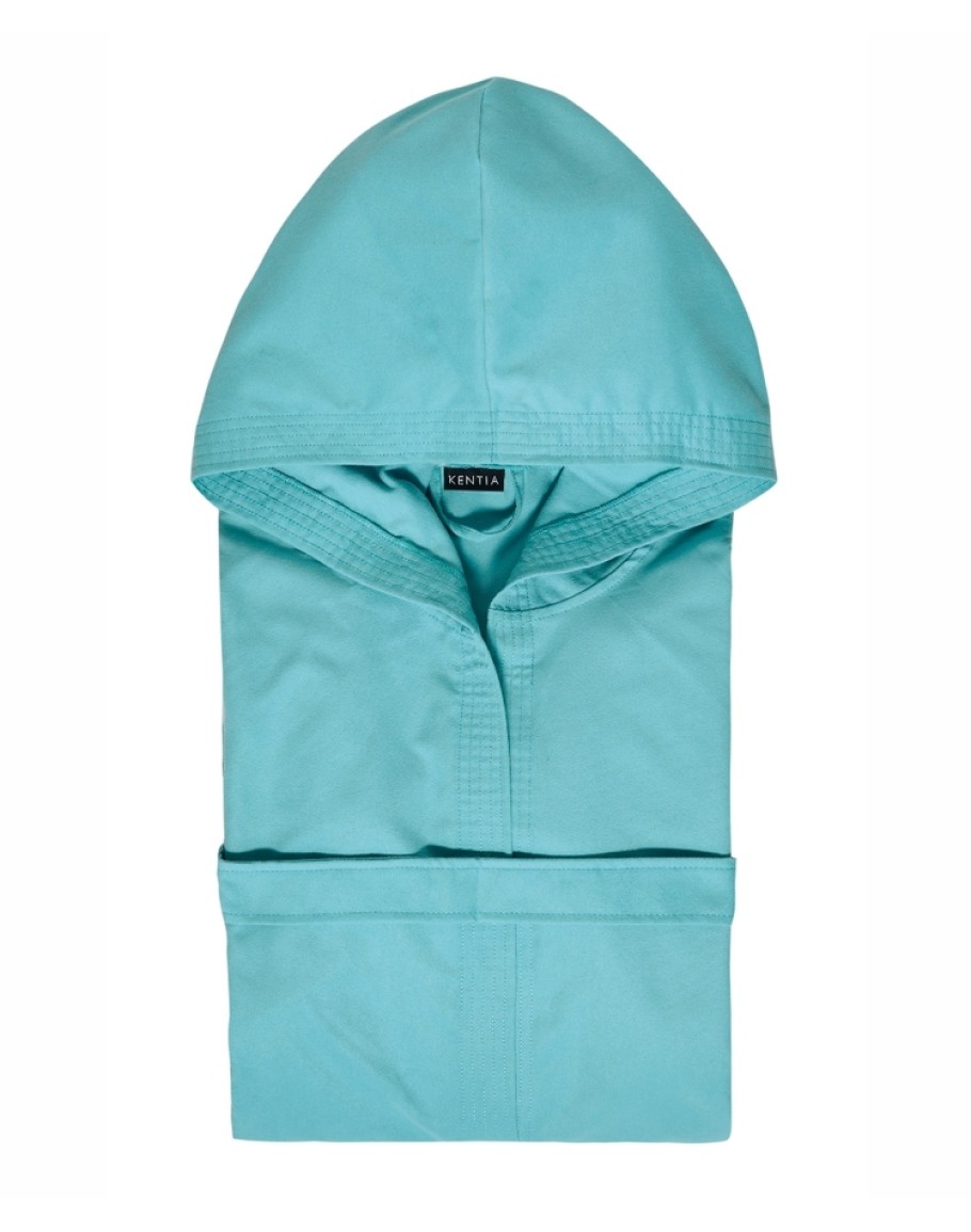 Μπουρνούζι με κουκούλα Quick dry, Rabat 07 Medium, KENTIA, από 80% πολυέστερ και 20% polyamide, 190γρ/τμ απαλό, πολύ απορροφητικό, στεγνώνει πολύ γρήγορα και πιάνει ελάχιστο χώρο. Το χρώμα έχει ανθεκτικότητα στο χλώριο της πισίνας και στο αλατόνερο.
