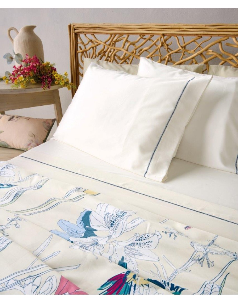 Σετ σεντόνια υπέρδιπλα, Namibia, KENTIA, με ύφασμα από 100% βαμβακό-σατέν 300TC. Το σετ περιλαμβάνει: 1 κατωσέντονο 240Χ270εκ, 1 πανωσέντονο 240Χ270εκ. και 2 μαξιλαροθήκες 50Χ70εκ. Συσκευασία: κουτί