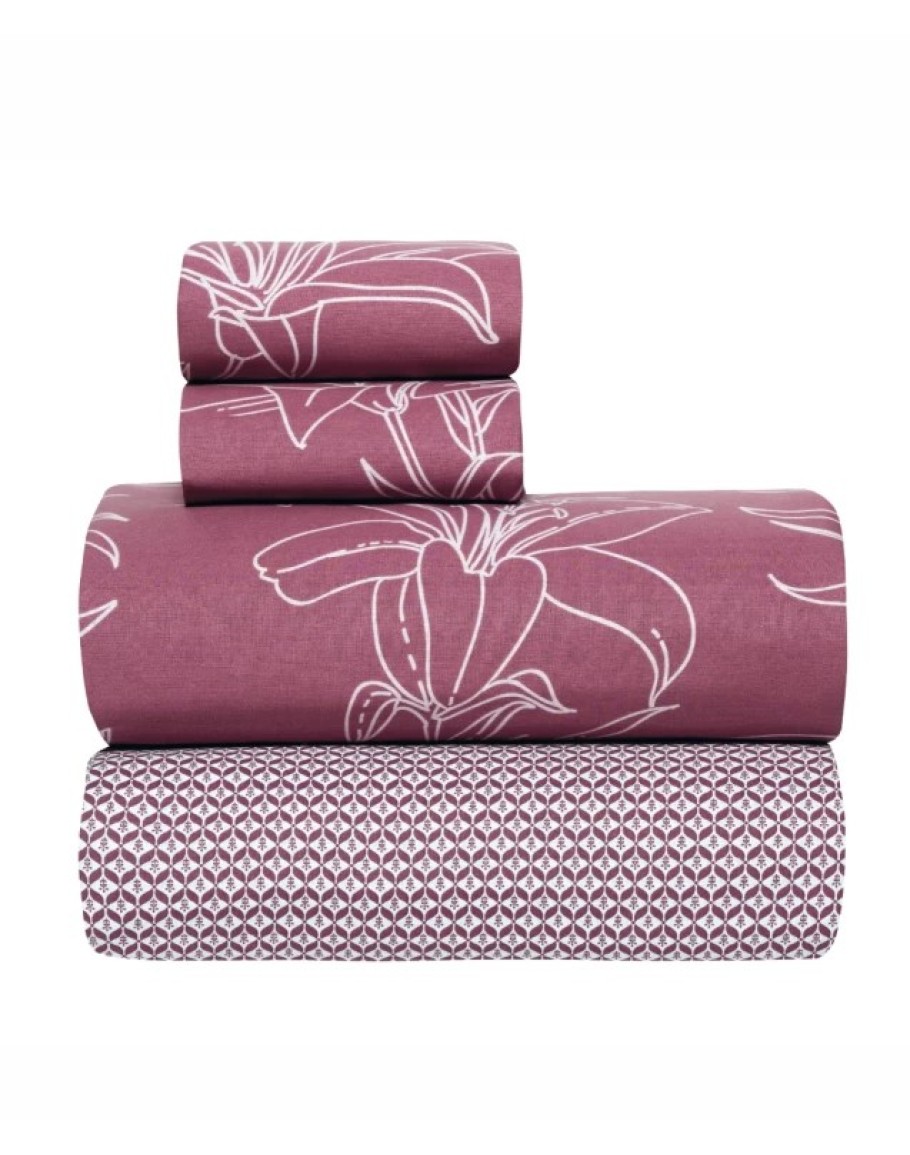 Σετ υπέρδιπλα σεντόνια, 4 τεμαχίων (κατωσέντονο, πανωσέντονο και 2 μαξιλαροθήκες), κατασκευασμένα από ύφασμα με 100% βαμβακερά νήματα πυκνότητας 150 κλωστών (150 TC), με λείο φινίρισμα και απαλή αίσθηση. Ύφασμα πολύ μαλακό, ιδανικό για καθημερινή χρήση. Διαστάσεις: 2(240X270)εκ. + 2(50X70)εκ.