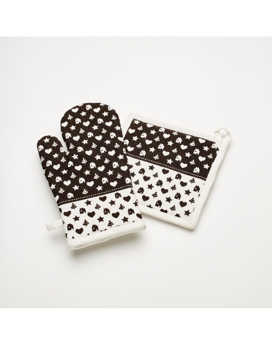 Σετ γάντι-πιάστρα, Bon Appetit, Salonica, από χοντρό βαμβακερό ύφασμα και παχιά βάτα, για μεγαλύτερη ασφάλεια. Μια μοντέρνα και παιχνιδιάρικη νότα στην κουζίνα σας!