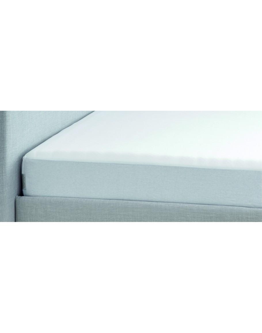 Αδιάβροχο κάλυμμα στρώματος Flannel, La Luna, αθόρυβο, με επιφάνεια από 100% βαμβακερό ύφασμα τύπου φανέλα, ιδιαίτερα απαλό, απορροφητικό και δροσερό και βάση από πλήρως αδιάβροχη μεμβράνη PU με πόρους, που επιτρέπουν στα μόρια του αέρα να την διαπερνούν. Περιμετρικά έχει ελαστική φούστα jersey 35 εκ. για μεγαλύτερη σταθερότητα.
