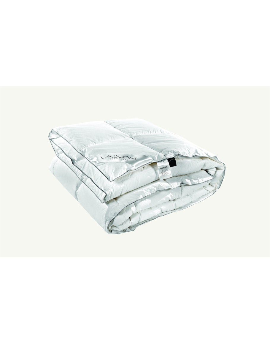 Πουπουλένιο πάπλωμα μονό, The Comfort Duvet, La luna, με γέμιση από 20% πούπουλο χήνας και 80% μικρό φτερό και ύφασμα 100% βαμβακερό percale 233TC αδιαπέραστο (down proof). Θερμική απόδοση: 9,5 tog. Διάσταση: 160Χ240 εκ.