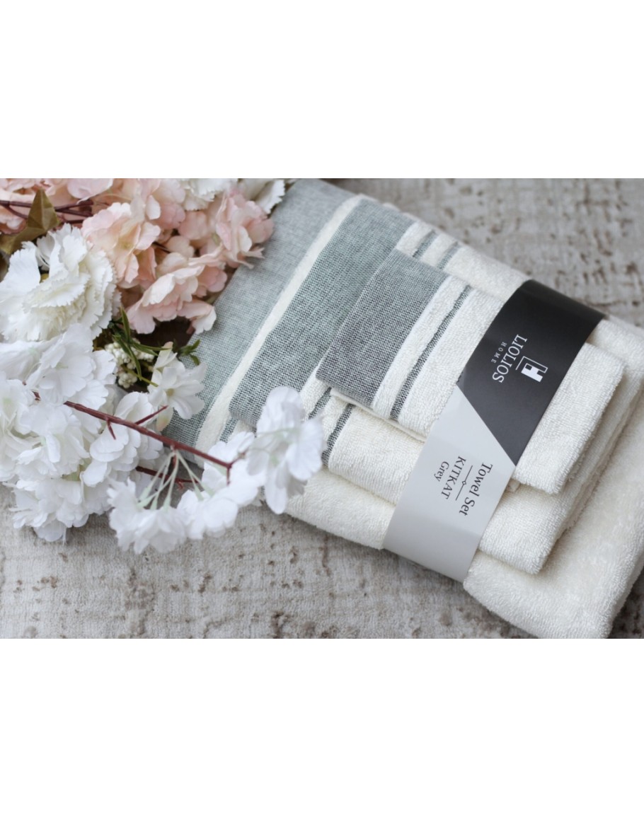 Σετ πετσέτες 3 τεμαχίων, Kitkat grey, Liolios, από 100% βαμβάκι 500γρ. Το σετ περιλαμβάνει μια πετσέτα 70Χ140, μία 50Χ90 και μία 30Χ50εκ
