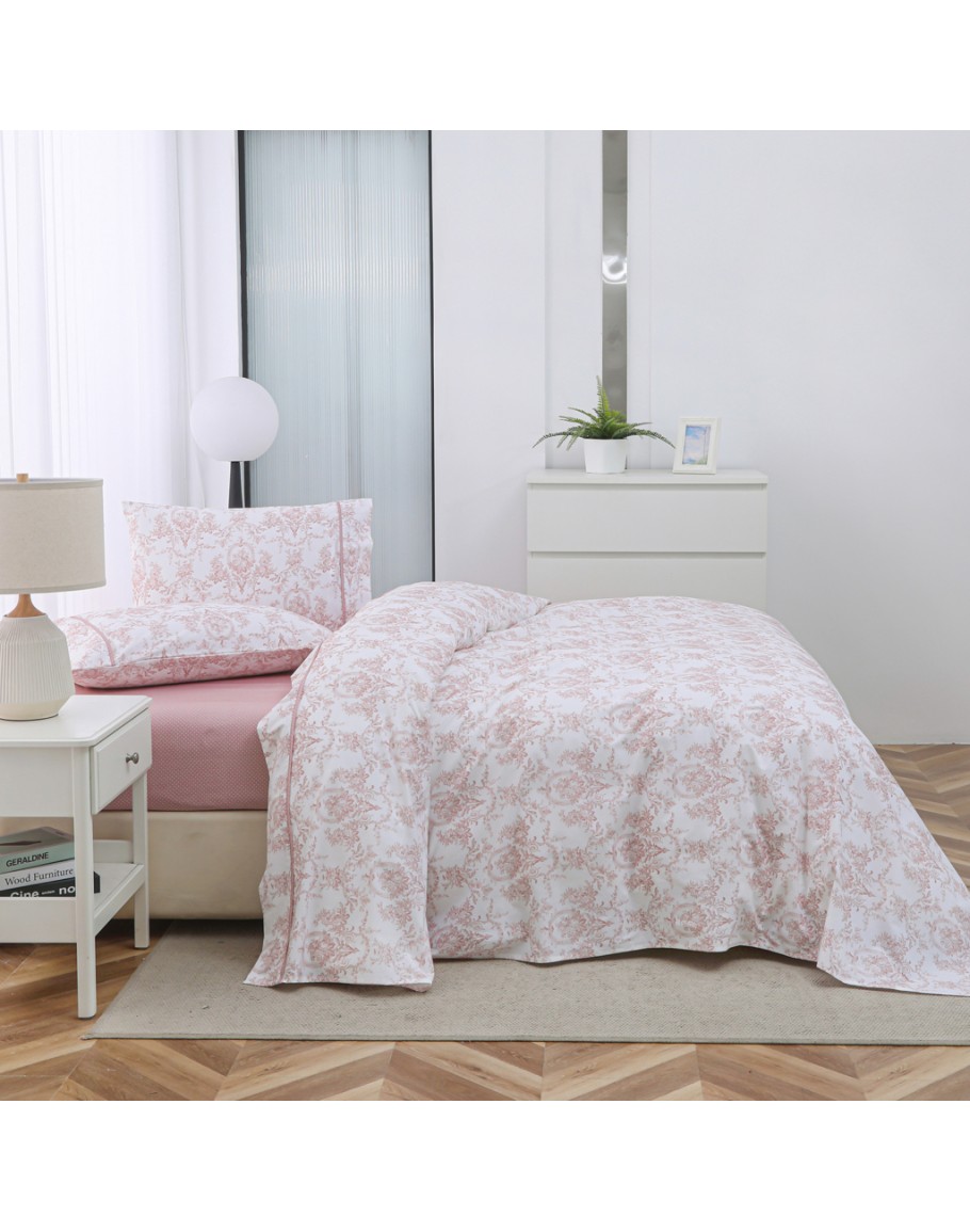 Σετ σεντόνια υπέρδιπλα, Chantal pink, Liolios, με ύφασμα από 100% βαμβάκι-περκάλι 210TC, απαλό και δροσερό το καλοκαίρι, με όμορφο ρομαντικό σχέδιο. Το σετ περιλαμβάνει 2 σεντόνια 245Χ270εκ και 2 μαξιλαροθήκες 52Χ75εκ