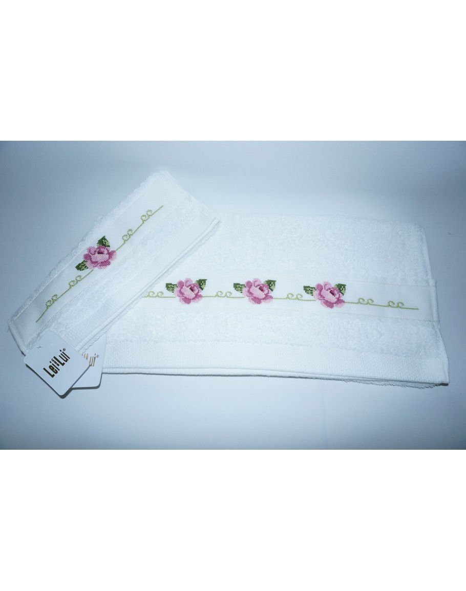 Σετ πετσέτες 2 τεμ. σχ. Rose2, One and Only Handmade, με μοναδικές χειροποίητες, ρομαντικές σταυροβελονιές! Η χουχουλιάρικη κι αφράτη πετσέτα είναι από 100% βαμβάκι 650 γρ.. Το σετ περιλαμβάνει μια πετσέτα διαστάσεων 50Χ100 και μια 30Χ50 εκ.