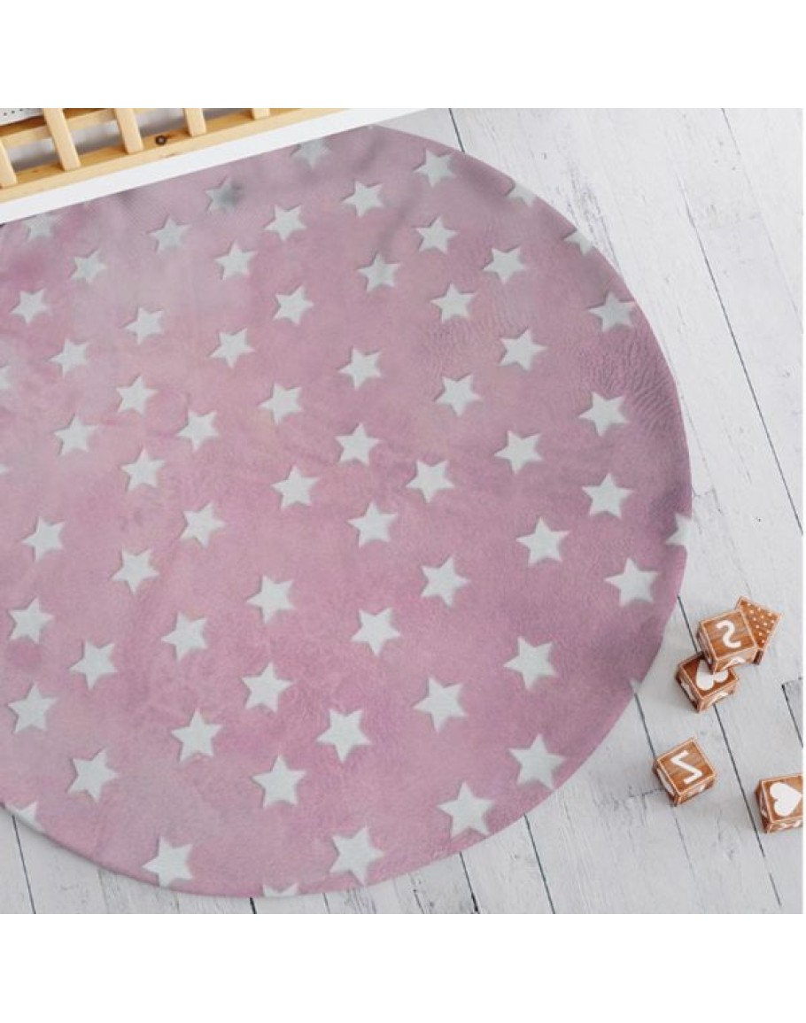 Παιδικό χαλί που φωσφορίζει, Starlight ροζ, Borea, από 100% πολυέστερ, flannel, με αστεράκια που φωσφορίζουν στο σκοτάδι και αντιολισθητική επένδυση στο κάτω μέρος. Πλένεται στο πλυντήριο. Διάσταση: 120εκ διάμετρος