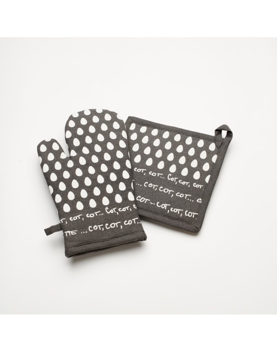 Σετ γάντι-πιάστρα, Κοτούλα, από χοντρό βαμβακερό ύφασμα και παχιά βάτα, για μεγαλύτερη ασφάλεια. Μια μοντέρνα και παιχνιδιάρικη νότα στην κουζίνα σας!