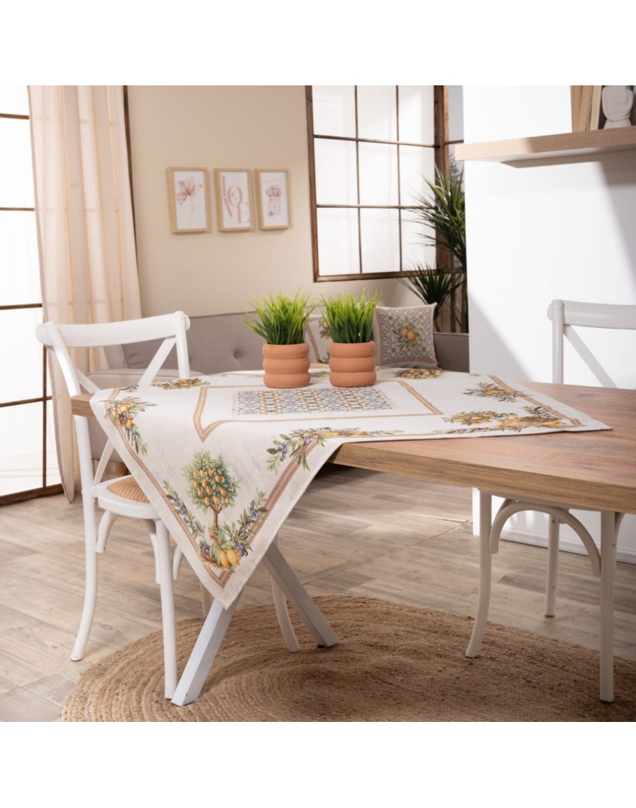 Καρέ Mediterraneo, Teoran, με στόφα Ισπανίας, από 40% βαμβάκι-40% ακρυλικό-20% πολυέστερ. Διάσταση: 100Χ100εκ.