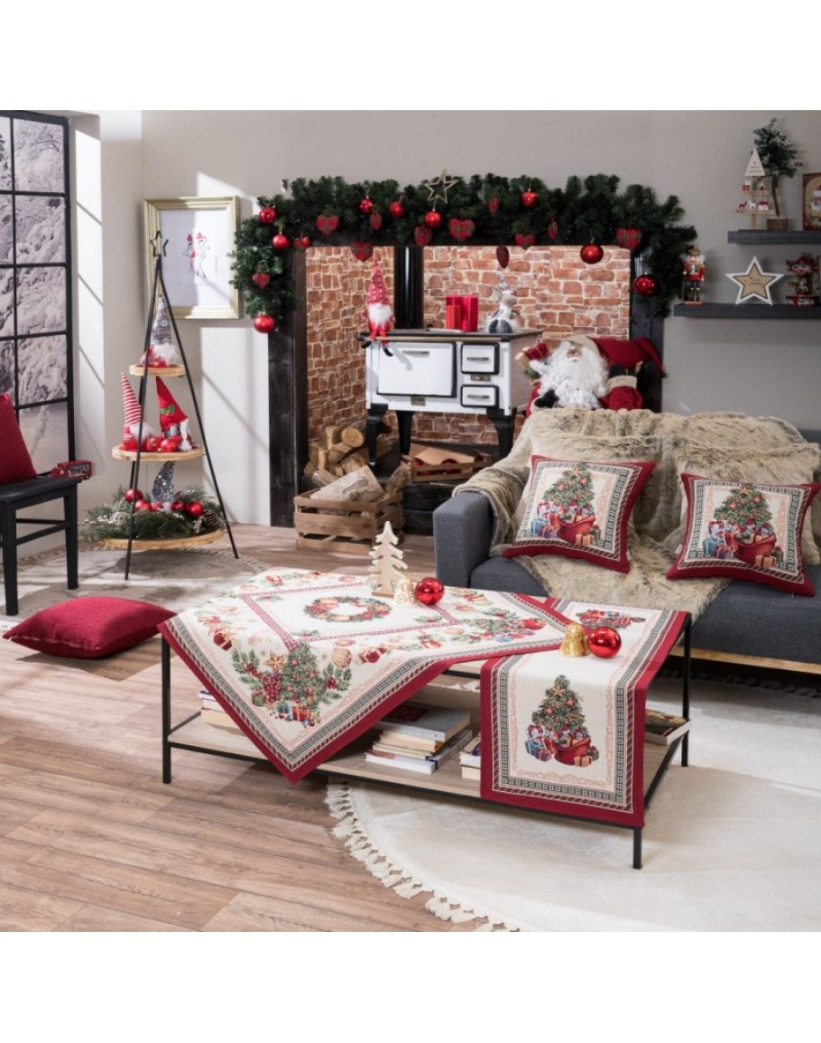 Χριστουγεννιάτικο σετ καρέ και τραβέρσα, Mondsee, Teoran, από στόφα Ισπανίας, εξαιρετικής ποιότητας. Σύνθεση: 40% βαμβάκι, 40% ακρυλικό, 20% πολυέστερ. Το σετ περιλαμβάνει: 1 τραβέρσα 40Χ100εκ και 1 καρέ 100Χ100εκ